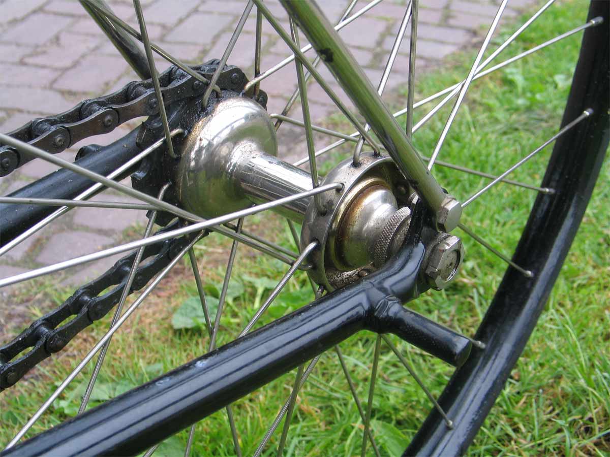 The only thing I know is what I see: a very individualistic early ladies bike, owner told me it is from 1894. Tube type pneumatic tires, very nice frame, beautiful hubs - typical American. The system for chain adjustment at the bracket must have been oldfashioned in 1894. Serial number is 2253 or 2258.